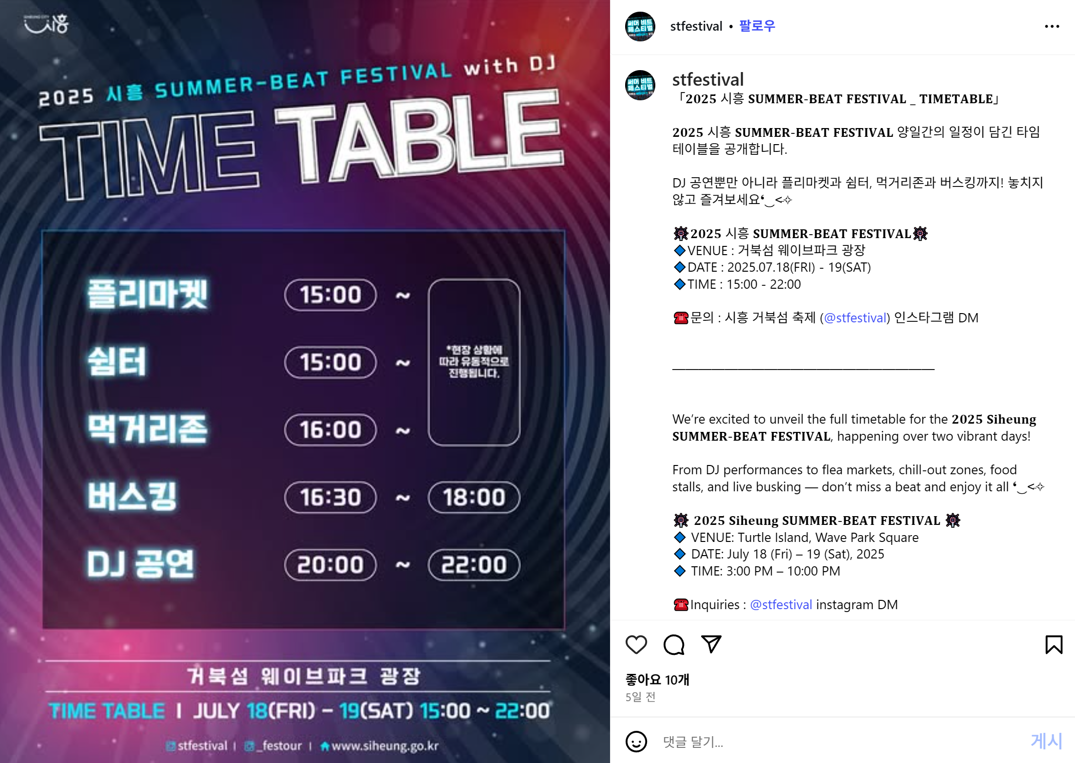 - 축제 장소: 시흥 거북섬 웨이브파크 광장